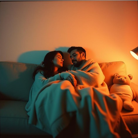I went onto Suno and put in a prompt to create a love song about a couple cuddling on a couch, wrapped in each other’s arms, sharing quiet laughter and gentle whispers. The warmth of their connection filled the air as the soft glow of the lamp bathed the room in a cozy light, making it feel like their own little world. And here is what Suno spit out.